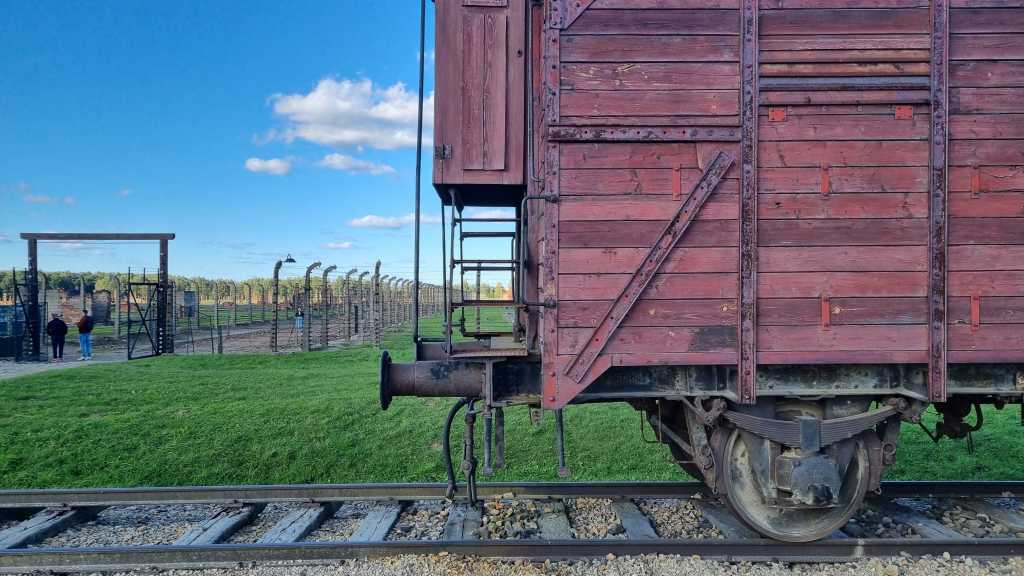 Auschwitz oli meille molemmille uusi kohde ja nyt Etelä-Puolassa käydessämme totesimme, että on aika paikata tämä aukko yleissivistyksessämme. Varasimme opastetun kierroksen, jossa meitä kierrätettäisiin sekä Auschwitzissa että Birkenaun leirissä. Leirit ovat sen verran kaukana toisistaan, että opastettu kierros oli hyvä päätös: meidät kuljetettiin parkkipaikalta pikkubussilla ensin Auschwitziin, sitten takaisin parkkipaikalle, josta käveltiin pari sataa metriä Birkenauhun.