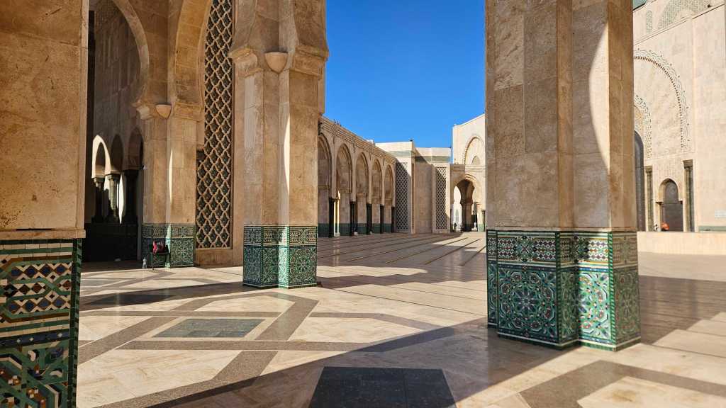 Modernimpi ja ehkä vieläkin vaikuttavampi esimerkki marokkolaisesta käsityöperinteestä löytyy Casablancasta. Vuonna 1992 valmistunut Hassan II:n moskeija oli valmistuessaan maailman suurin. Massiivisen moskeijan koristeita oli valmistamassa jopa 10 000 käsityöläistä. Moskeijan yhteydessä toimii myös koulu, jossa perinteisiä käsityötaitoja opetetaan uusille sukupolville. Turistina moskeijaan pääsee sisälle opastetulla kierroksella – tämä on koko Marokon ainoa moskeija, jossa myös ei-muslimit voivat vierailla – ja samalla lipulla voi tutustua museoon, jossa erilaisia moskeijassa käytettyjä koristemenetelmiä esitellään.