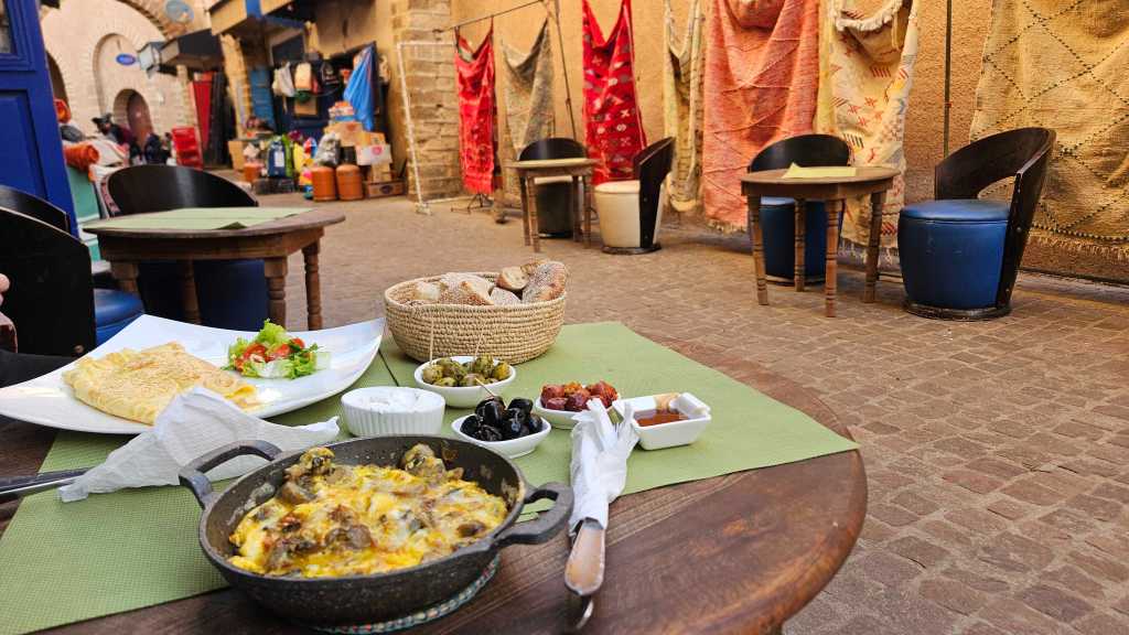 Viimeinen kohteemme Essaouira oli ehkä turistisin paikoista, joissa vietimme aikaa. Viehättävässä pikkukaupungissa oli suuri vanha kaupunki, josta erottui selvästi turistien suosima osa, jossa oli ravintoloita, kattoterassibaareja ja matkamuistomyyjiä. Toisaalta vanhan kaupungin toisessa päässä oli paikallisempi asuinalue, jonka kauppakaduilta sai ostettua kaikkea merenelävistä oliiveihin, mausteisiin ja eläviin kanoihin.