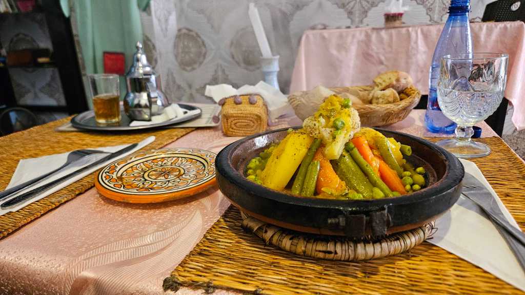 Marokkolainen illallinen tarjoaa mausteita sekä yleensä paljon kasviksia. Tajinesta voi löytyä perunaa ja porkkanaa, kesäkurpitsaa, kikherneitä, tomaatteja sekä kanaa tai lihaa. Rannikolla tajinessa haudutetaan myös kalaa ja lähes jokaisesta ravintolasta saa myös tomaattikastikkeesta kypsennettyjä maukkaita sardiinipullia.